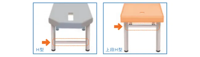 ・上段H型は横バーが施術の邪魔にならない設計です。 ※強度(等分布荷重 400kg)はほぼ同じレベルです。