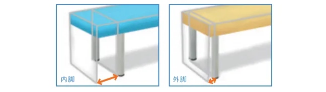 ・内脚 脚が内側についています。施術に脚が邪魔になりにくい設計です。