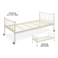 病室専用ベッドとして開発された通気性の高いスチールメッシュ構造。ベッドからの転落を防止するベッドガード用差込穴を両側に標準装備。対角にロック機能を装備した直径7.5cmキャスター&滑り止め足ゴム。