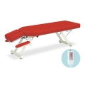 ほんのりとした暖かさを実現する温熱シート内蔵。温度調節機能付き。うつ伏せでの施術に最適な緊張を暖和する専用手置き台付き施術台。縦型調節式ヘッド。ガスシリンダー式角度調節機能付き。15~-40°。長さ190cm