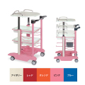 ハンドルから手を離すと自動でロック。安全安心の新機能キャスター。使用者の身長差に対応可能な2cm間隔15段階の高さ調節機能付き。重い物も置けるスチール棚(最下段)と大型トレー2個を標準装備。幅:47cm×奥行:59.5cm×高さ83cm
