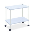 医療用木製棚板ワゴンとして多目的に活用できる頑丈な業務用。棚上面をポリエステル化粧板仕上。外周ABS木口テープ巻き加工。直径4cmの双輪キャスターを採用。定番の2段式