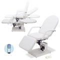 スリーモーター採用のコンパクト設計を実現した電動式エステベッド。フットスイッチ式の高さ調節&手元スイッチ式の背脚角度調節を実現。安全性の高いアームレストを標準装備。背0~85°。脚0~-90°