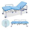 透析室で利用できるサイズや機能を優先したリナック社製2モーター。マットレス不要のクッション仕様。背あげ0~80°。脚あげ0~35°。F型ベッドガード2本付き。直径7.5cmダブルロック式キャスター仕様。