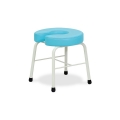 分娩後の着座時に重宝する局部痛を最大限に緩和する産褥椅子。床面をキズから守る専用脚ゴム付き。頑丈なスチール製溶接加工。座面直径41cm、座高47cm