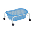 直径4cmの双輪キャスター付き。環境にやさしい粉体塗装仕上げ。衝撃強度に優れ水分や薬品にも強く丸洗いも可能なプラスチックカゴ。幅51cm、奥行37cm、高さ23.5cm