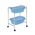 直径4cmの双輪キャスター付き。衛生的なクロムメッキ加工仕上げ。衝撃強度に優れ水分や薬品にも強く丸洗い可能なプラスチックカゴ。幅52.5cm、奥行37cm、高さ75.5cm