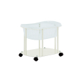 直径4cmの双輪キャスター付き。環境にやさしい粉体塗装仕上げ。衝撃強度に優れ水分や薬品にも強く丸洗い可能なプラスチックカゴ。幅51cm、奥行37cm、高さ43cm