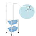 コートや上着が掛けられる便利なハンガーバー付き2段用脱衣カゴ。直径4cmの双輪キャスター付き。環境にやさしい粉体塗装仕上げ。衝撃強度に優れ水分や薬品にも強く丸洗い可能なプラスチックカゴ。