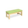 木のナチュラルな風合いがくつろぎ感を高める待合いソファー。ナチュラルな風合いのメルクパイン材。脚部滑り止めゴム付き。食品衛生法に適応した安全で臭いの少ない低臭透クリア塗料を採用。座幅45cm、長さ90cm、座高40cm