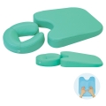 こだわりの厚みを実現したニューフェイス&薄型ケアーバスト(エアホール有り)のセット。ニューフェイス:幅29×奥行29×高さ8cm。薄型ケアーバスト:幅42×奥行50×高さ3/8cm。薄型ケアーバスト:幅42×奥行50×高さ3/8cm