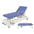 ■電動旋回昇降式で高さを調節できるフットスイッチ操作の電動施術台。