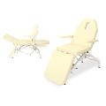 フェイシャル等のエステ専用に開発された廉価版マッサージベッド。 シングルALレバー式無段階角度調節機能。背0~70°。脚30~-55°。 安全でスムーズなベッドの乗降を実現する回転式アームレストを採用。 幅56cm 長さ180cm 高さ60cm